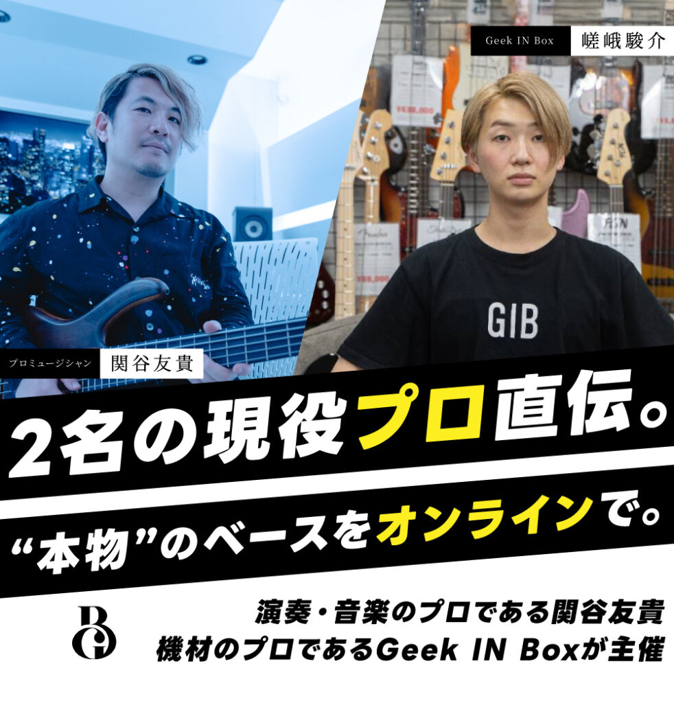 Geek IN Box(GIB)は、プロベーシスト関谷友貴氏と共同で、BASS GEEKのための定額制オンラインサービス「BASS GEEK College」を立ち上げました。これまでにない演奏のプロと機材のプロによるベーシスト向けオンラインコミュニティを目指します。2025年7月より正式リリースし、参加者を募集中です。