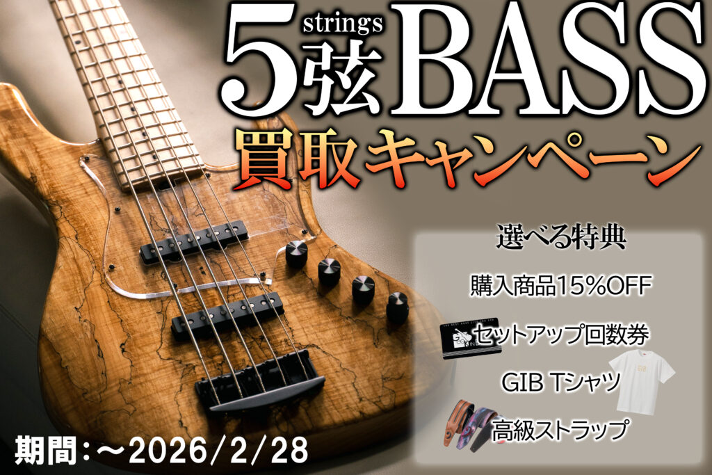 GIBでは2026年2月28日まで5弦ベースを買取強化いたします。 対象のベースをGIBに買取に出していただいた方には、素敵な「選べる特典」をプレゼント。 素敵な選べる特典の内容 セットアップ3回回数券(9,900円)を…