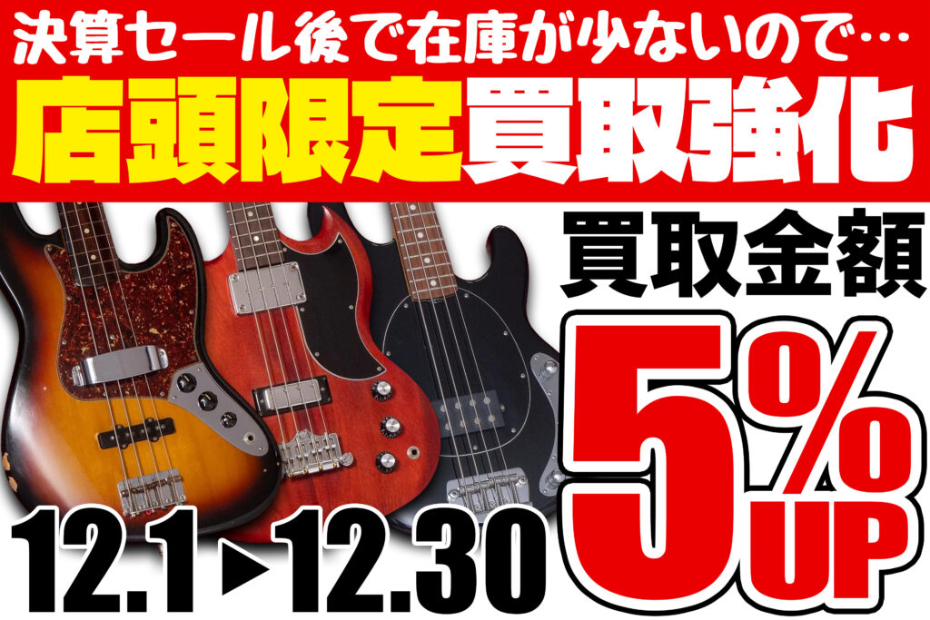決算セールが好評につき、多くの楽器が旅立ち、現在店頭の在庫が少なくなってきています。 そこでGIBでは、12月限定で買取を強化する特別キャンペーンを実施します! 店頭買取予約はこちら ■ 12月は“店頭持ち込み”で買取金…