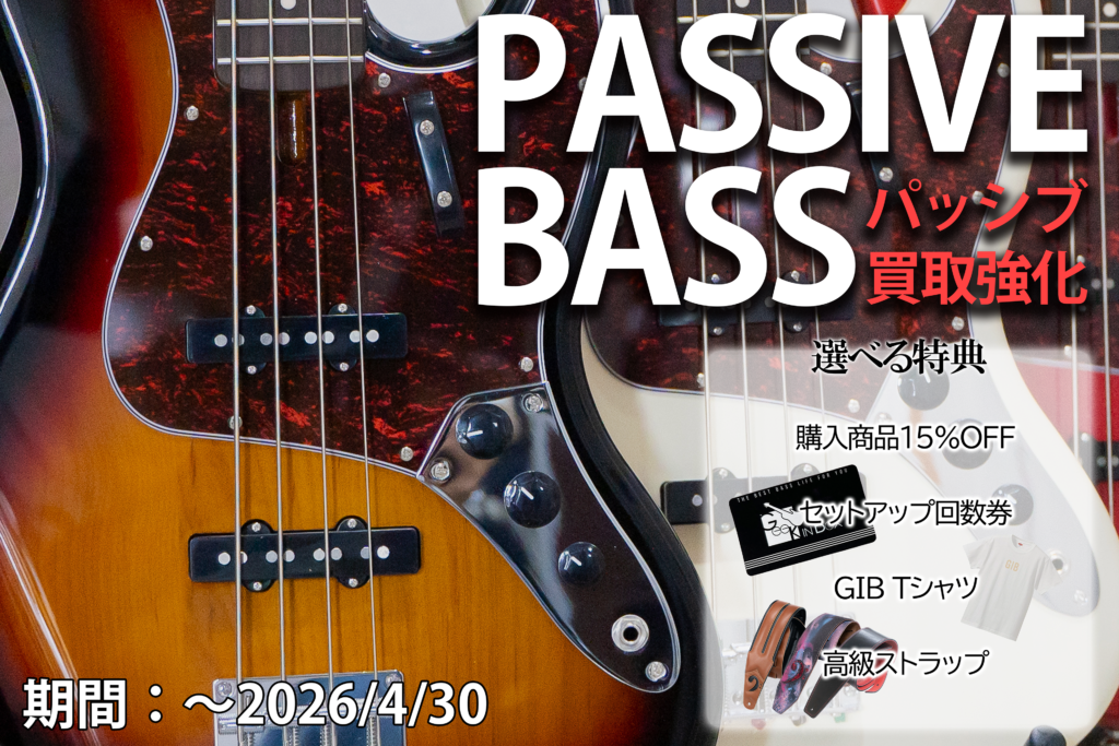 GIBでは2025年11月30日までセットネック&スルーネックベースを買取強化いたします。 対象のベースをGIBに買取に出していただいた方には、素敵な「選べる特典」をプレゼント。 素敵な選べる特典の内容 セットアップ3回…