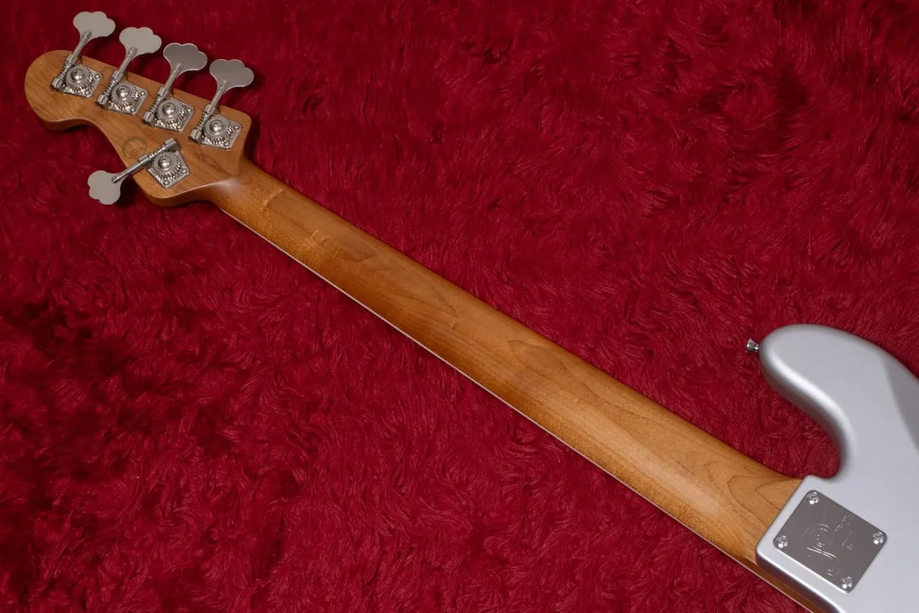 また、国産のエレキギター・ベースでは初のカーボンネックを開発・制作した実績もあります。カーボンの焼き方やネックの構造を工夫することにより木材との差異が起きづらいようになっています。カーボンは気候変化に左右されないため、一度セッティングした適切なネックコンディションを保持し続けることが可能です。さらに、木材のネック同様にトラスロッドが組み込まれているため演奏スタイルに合わせて微調整も可能です。
