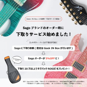 Sagoは兵庫にあるハンドメイドギターブランドで、顧客からの要望を全て叶えるフルオーダーでの製作を得意としています。SagoのカスタムオーダーはGeek IN Box・TONIQを利用して行えます。